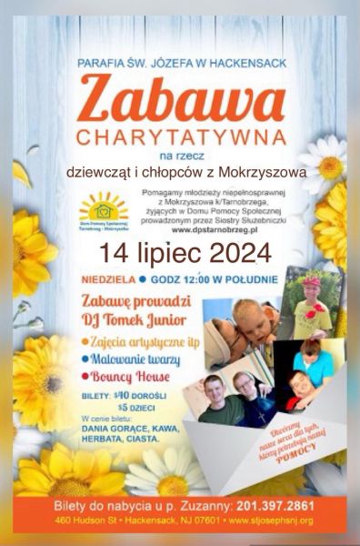 We are informing you and inviting you, as we do every year, to a charity event for “The Children from Mokszyszów,” which will take place in our parish on July 14. We will inform you about the details soon. You can also find this information on the posters at the back of the church, on our website and on Facebook.
